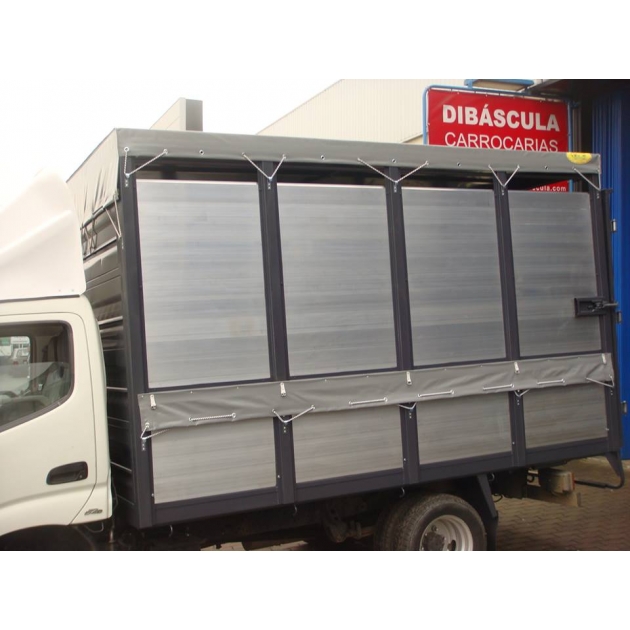 traseira de bascular com molas, porta lateral de abrir, cúpula em tolde, cancela interior de
