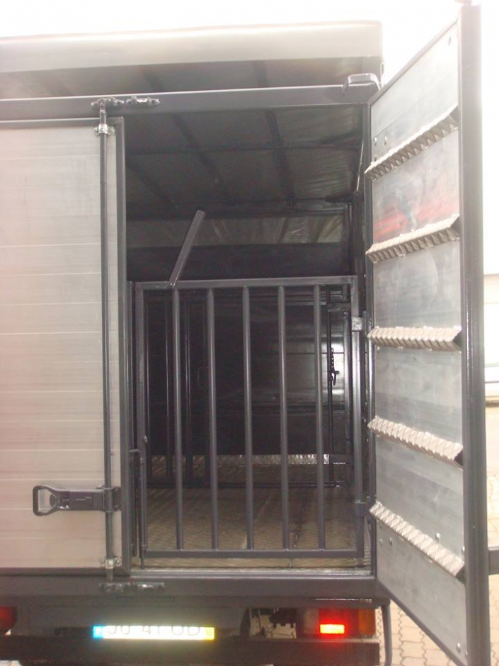 Carroçaria transporte de animais, fundo e laterais em chapa de alumínio antiderrapante, porta